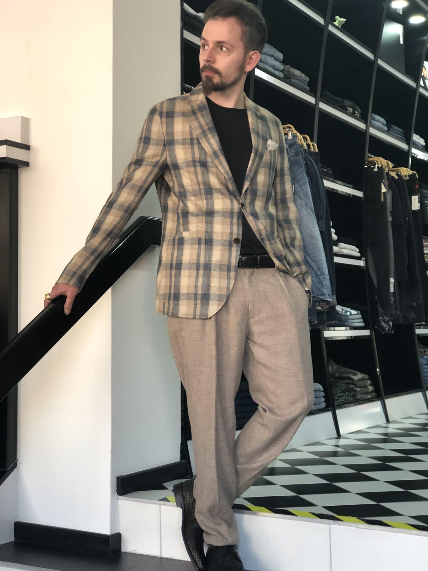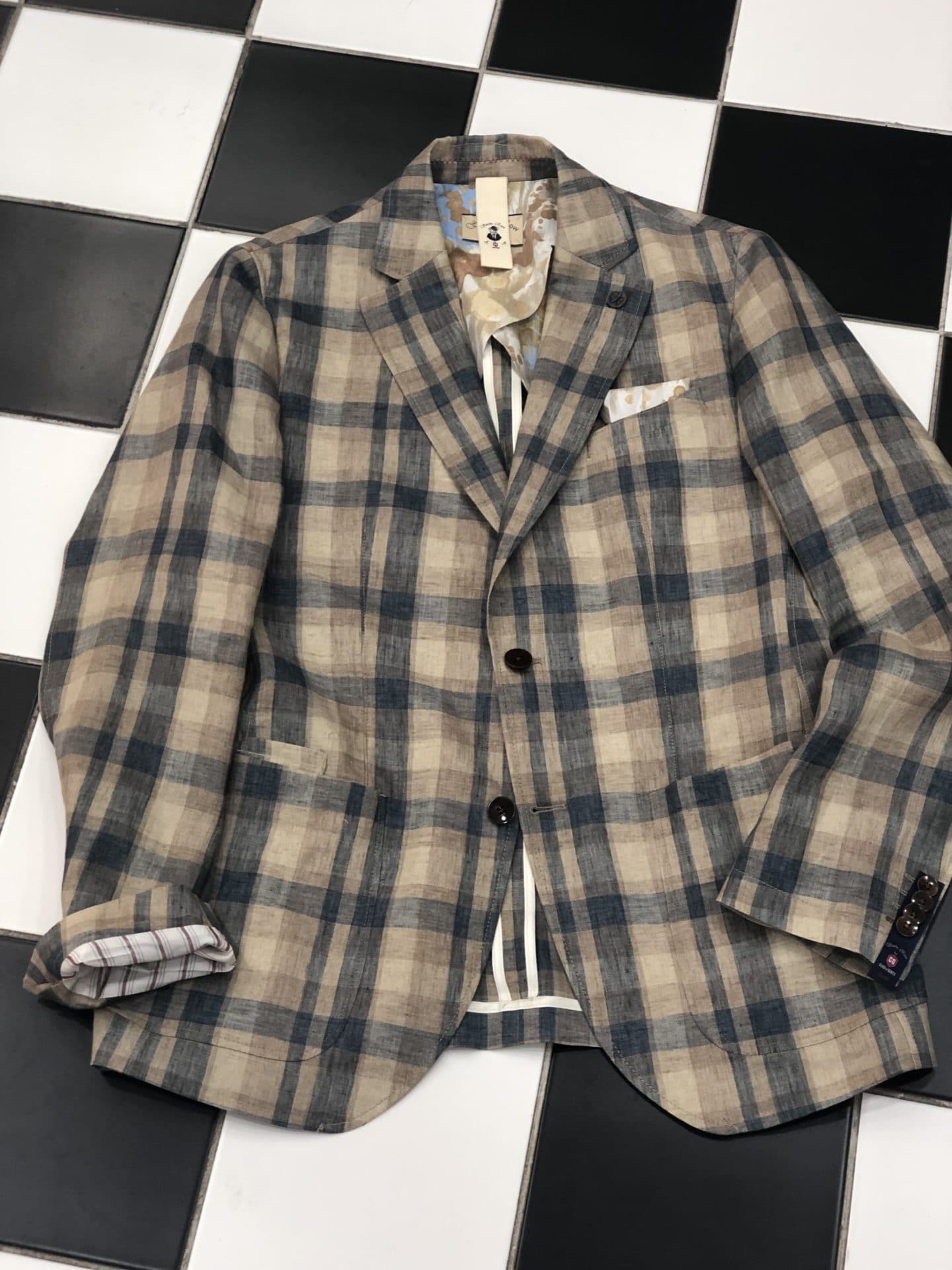 Modisches CG Leinensakko im KAROMUSTER /mehrfarbig Haupttöne Blau /Braun/Grau