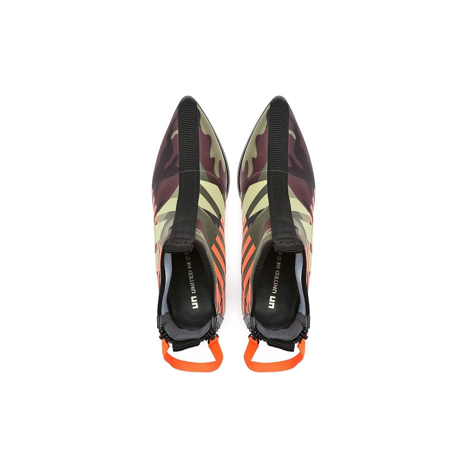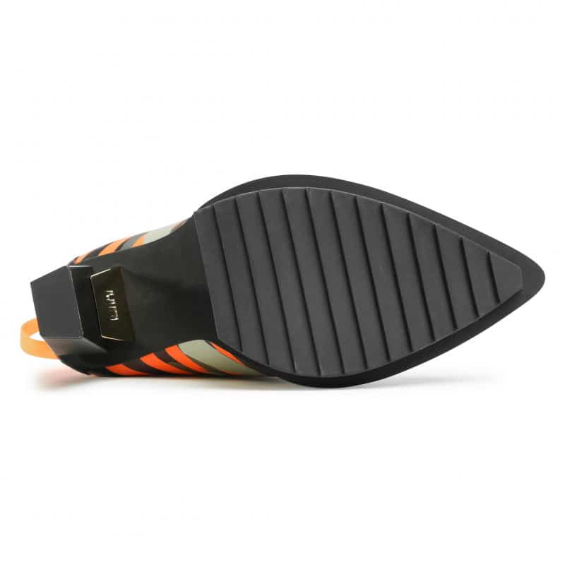 The Lev Calli Mid is a pointy toe high heel with a socklike neoprene upper that is lifted by an architectural block heel. Rear double zips with additional pull straps ensure easy on and off wear.